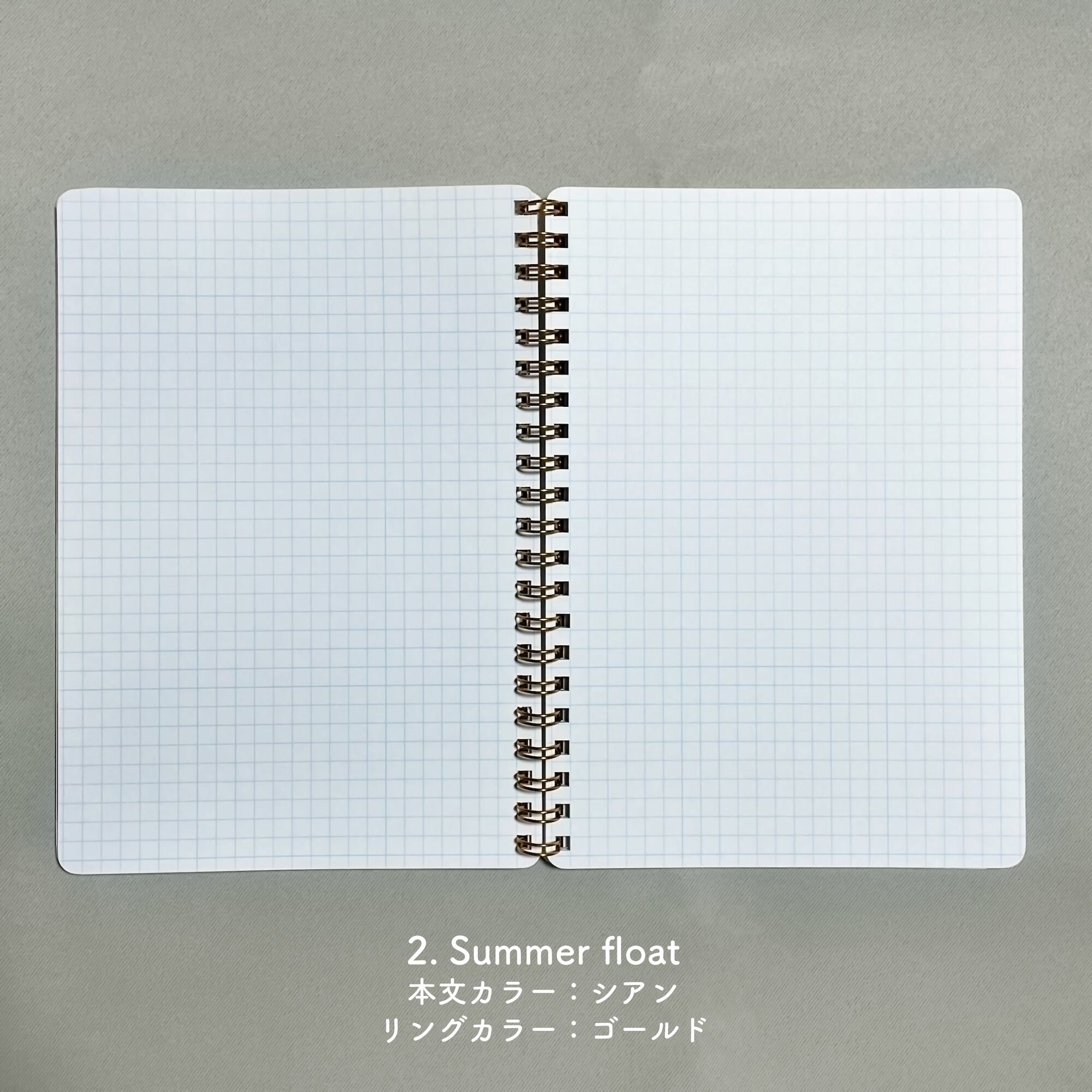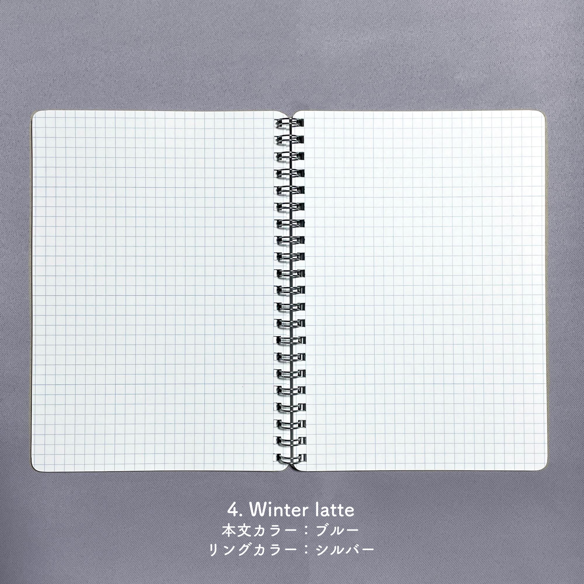 表紙だけでなく、中の方眼の色やリングの色の違いまで楽しめるデザインです。